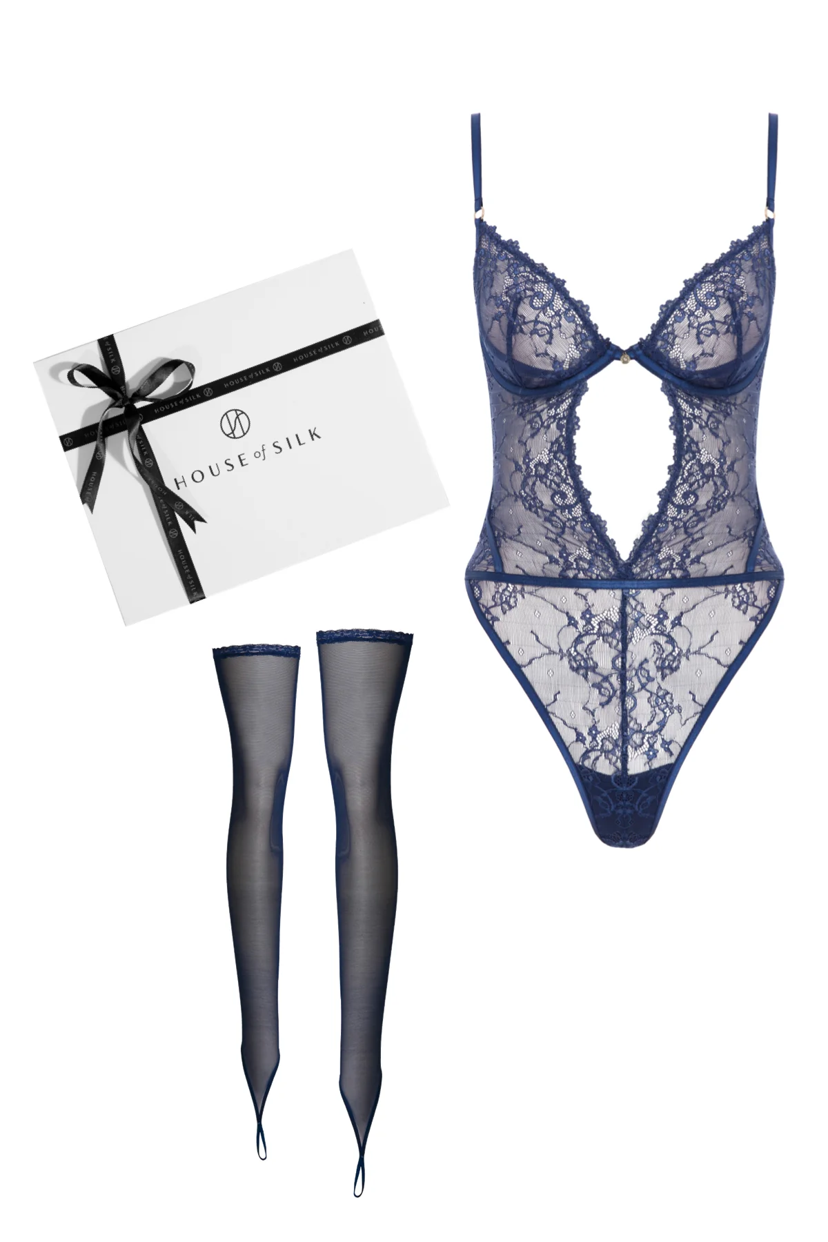 Attitude Hediye Seti, Charlotte Bodysuit ve uyumlu çorabıyla tutkulu aşıkların vazgeçilmezi. Vücudu zarifçe saran Charlotte Bodysuit, siluetinizi öne çıkarırken; Charlotte Tül Çorap ise görünümünüze iddialı ve “bossy” bir dokunuş katıyor.